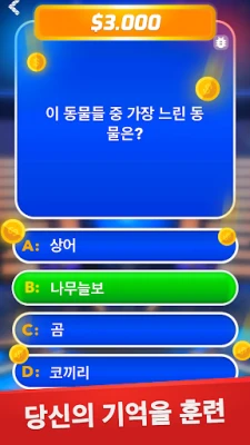 당신의 지식이 실제 상금으로 이어진다면 어떨까요? "밀리어네어 - 오프라인 상식 퀴즈 게임"은 당신의 두뇌를 자극하고 숨겨진 잠재력을 끌어내는 궁극의 지식 대결입니다. 쉬운 질문으로 시작하여 매 레벨마다 한층 더 깊고 복잡한 상식의 세계로 빠져들게 될 것입니다. 기억력과 논리력을 훈련하고, 흥미로운 사실들을 학습하며, 가상의 백만장자 클럽에 합류하는 짜릿함을 경험해보세요. 지적 탐구의 여정에서 자신을 단련하고, 지식의 힘으로 정상을 향해 나아가십시오.