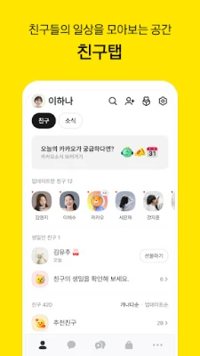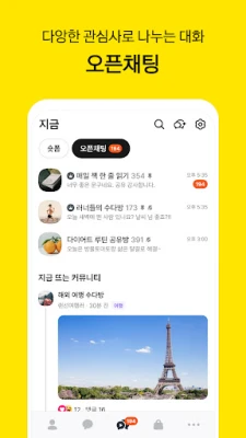카카오톡은 소통을 넘어 새로운 즐거움을 선사합니다. 실시간 트렌드를 한눈에 조망하고 원하는 주제로 바로 대화에 참여하는 오픈 채팅 커뮤니티는 관심사 기반의 연결을 강화합니다. 또한, 지금탭에서 발견한 다채로운 숏폼 콘텐츠를 채팅방에서 친구들과 함께 감상하며 대화를 더욱 풍성하게 만들 수 있습니다.