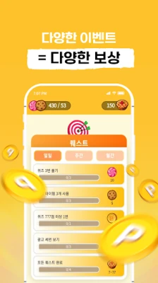 코퀴즈의 매력은 끝없는 보상 체계에서도 빛을 발합니다. 매일 꾸준히 출석하고 다양한 퀘스트를 완수하며 쌓이는 보상의 기쁨을 즉시 경험하세요. 힘들게 모은 보상을 기다릴 필요 없이, 받는 그 순간 바로 사용할 수 있습니다. 비트코인이나 이더리움 같은 암호화폐로 교환하거나, 맛있는 치킨과 피자 등 원하는 상품으로 교환하여 당신의 노력이 곧 현실적인 혜택으로 돌아오는 것을 직접 확인해 보세요.