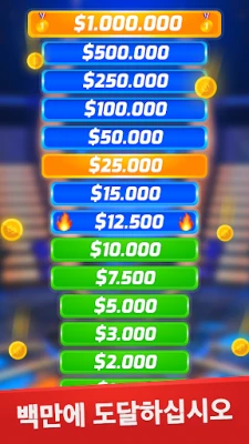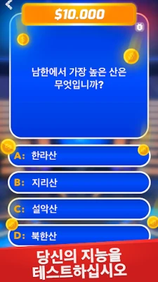 당신의 지식이 실제 상금으로 이어진다면 어떨까요? "밀리어네어 - 오프라인 상식 퀴즈 게임"은 당신의 두뇌를 자극하고 숨겨진 잠재력을 끌어내는 궁극의 지식 대결입니다. 쉬운 질문으로 시작하여 매 레벨마다 한층 더 깊고 복잡한 상식의 세계로 빠져들게 될 것입니다. 기억력과 논리력을 훈련하고, 흥미로운 사실들을 학습하며, 가상의 백만장자 클럽에 합류하는 짜릿함을 경험해보세요. 지적 탐구의 여정에서 자신을 단련하고, 지식의 힘으로 정상을 향해 나아가십시오.
