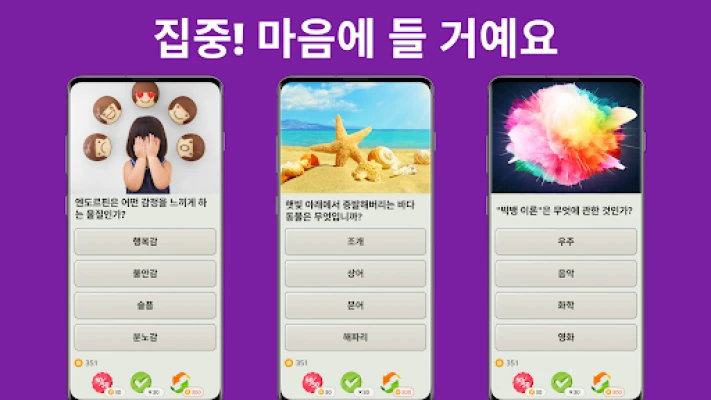 지루할 틈 없는 지식의 여정, QuizzLand와 함께 떠나보세요! 흥미진진한 상식 퀴즈를 풀며 두뇌를 단련하고, 모든 문제에 덧붙여진 심층적인 해설을 통해 몰랐던 유익한 정보까지 얻는 즐거움을 경험할 수 있습니다. 다른 플레이어를 기다릴 필요 없이 오롯이 나만의 페이스로 지식의 깊이를 탐험하며 IQ와 일반 상식을 동시에 향상시켜 보세요. QuizzLand는 단순한 퀴즈를 넘어 지적 호기심을 자극하는 완벽한 학습 놀이터입니다.